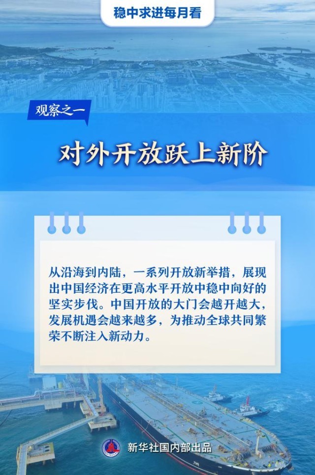 【记者观察】从沿海到内陆,一系列开放新举措,展现出中国经济在更高水平开放中稳中向好的坚实步伐。中国开放的大门会越开越大,发展机遇会越来越多,为推动全球共同繁荣不断注入新动力。