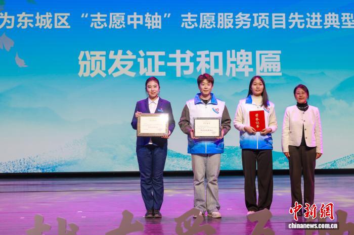 现场为“志愿中轴”项目先进典型颁发证书和牌匾。记者 贾天勇 摄